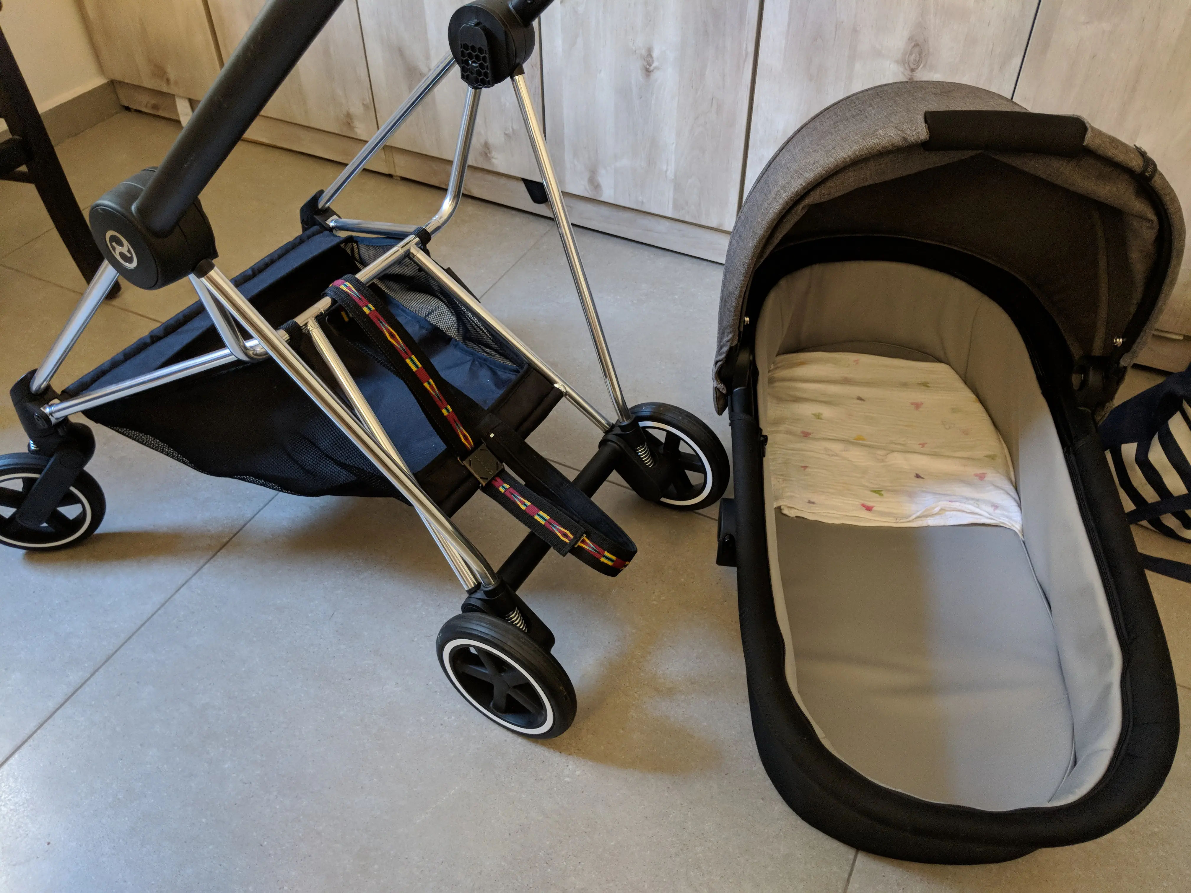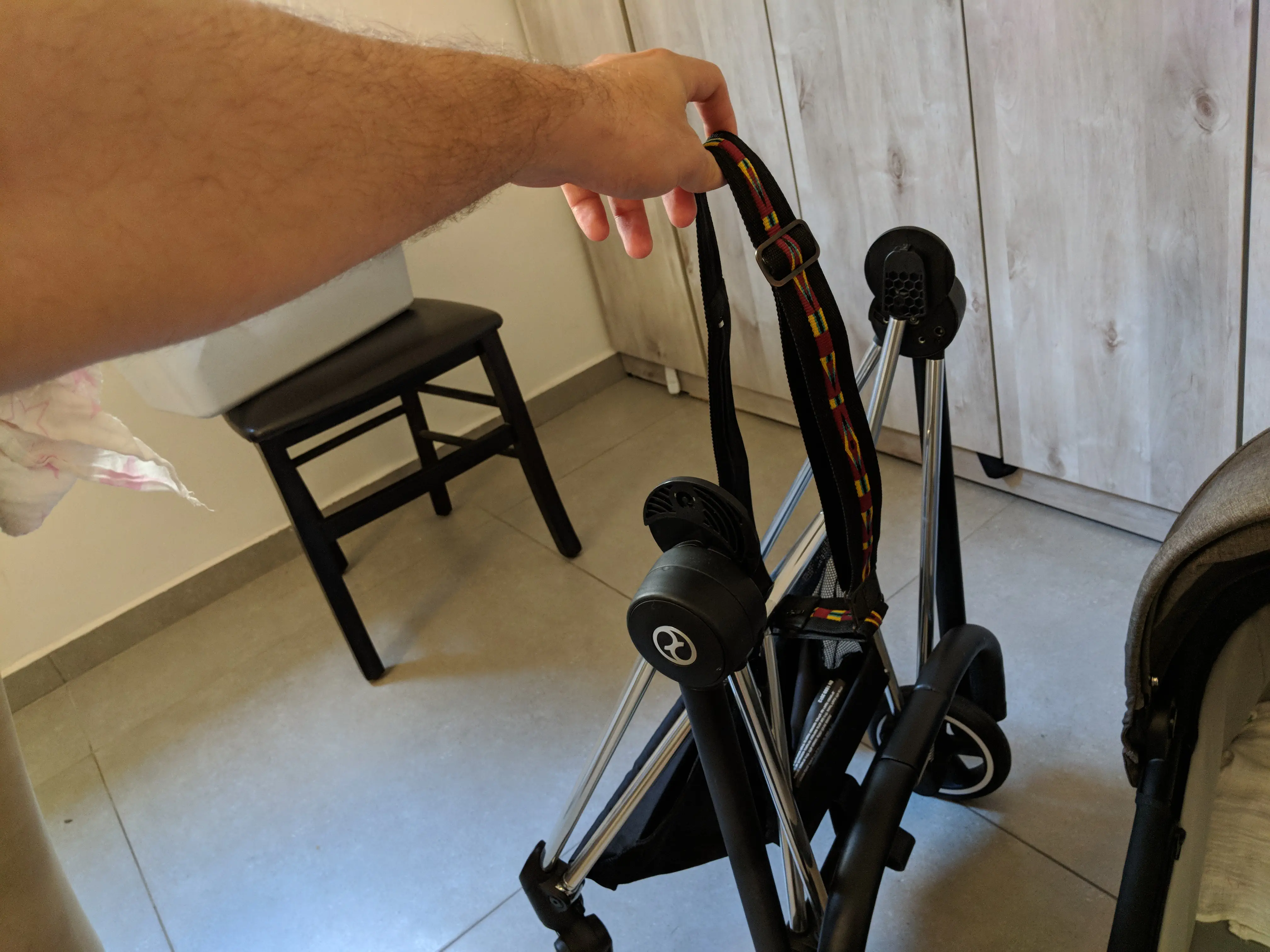 לבסיס של העגלה , אותה ניתן לשים על הכתף ופשוט שמים את התינוק באמבטיה ואז יורדים איתו בזהירות, כל זאת מבלי לעלות ולרדת פעם נוספת.