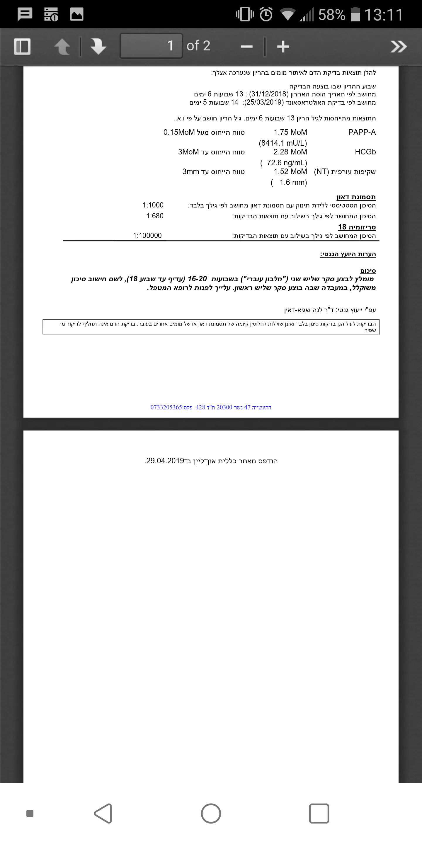 שיליה נמוכה - 1.4 ס״מ מרחק מהפתח