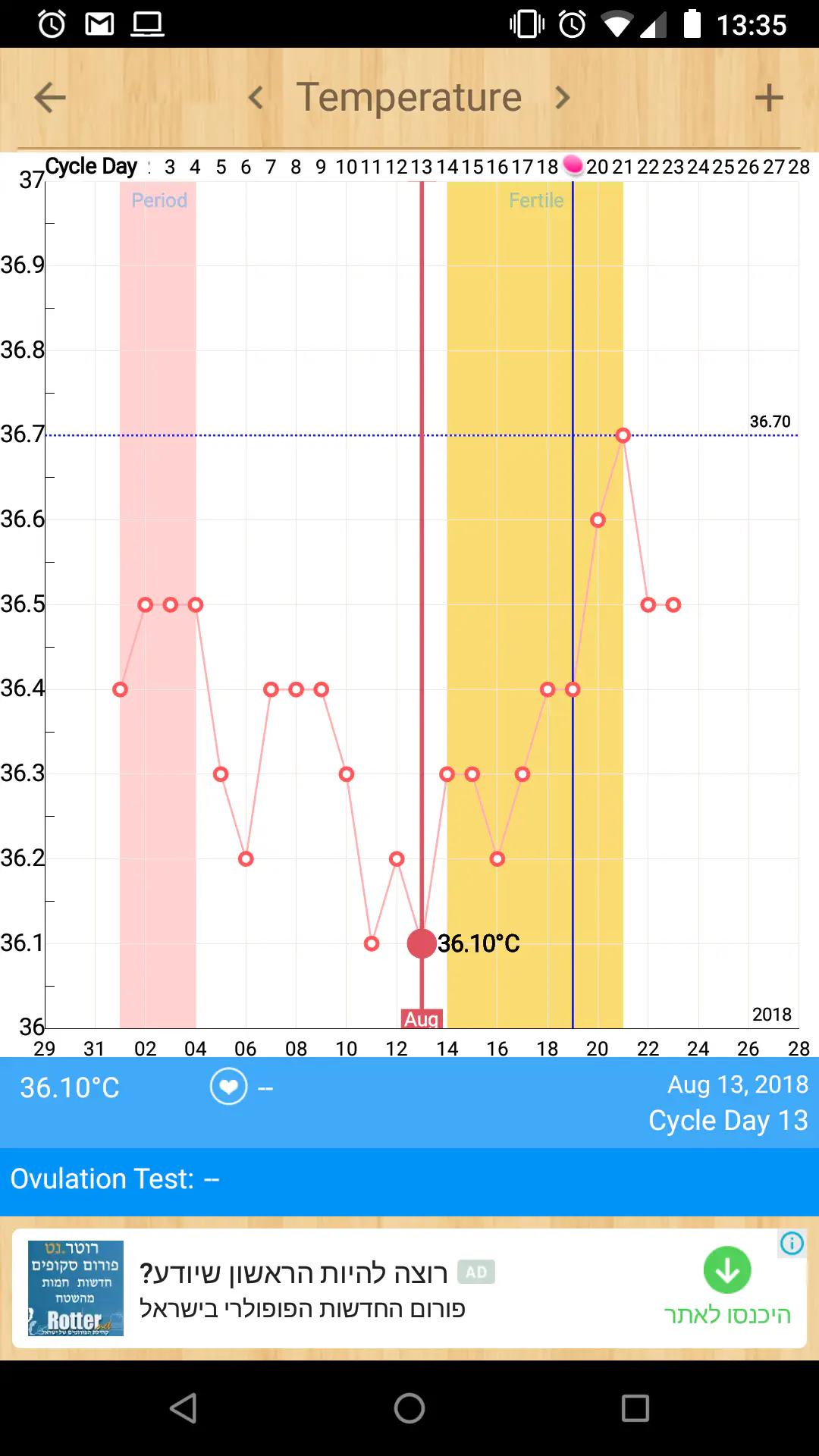 עברו עוד כמה ימים ואני מצרפת את הגרף המעודכן. מה ההגיון בירידה של היומיים האחרונים? זה סימן טוב או שזה אומר שאולי לא היה בכלל ביוץ?
