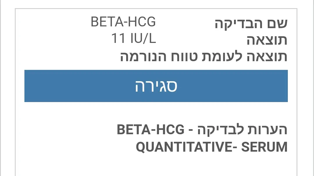 היום עשיתי בדיקת דם (27 יום לאחר המחזור האחרון) - והגיעה תוצאה שאני לא רגילה אליה: 11.