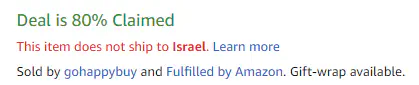 כשאתן נמצאות על המוצר, שימו לב שלא מופיעה לכן הודעה שאינו שולח לישראל. לרוב יופיע בצבע אדום איפה שיש את תיאור המוצר.