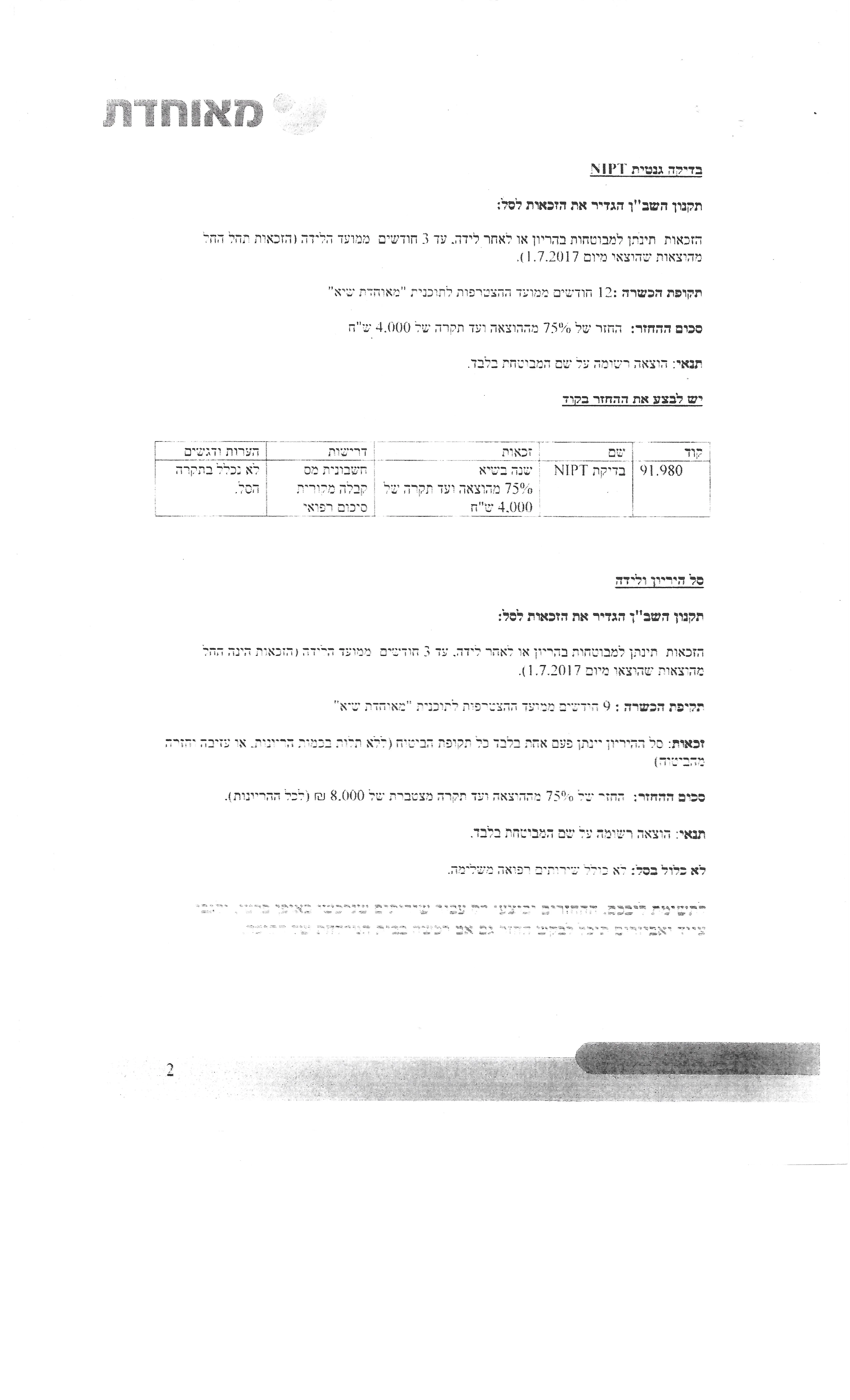 גם מאוחדת שיא התחילו לתת צ'ק הריון כמו כללית פלטינום - הריון ולידה
