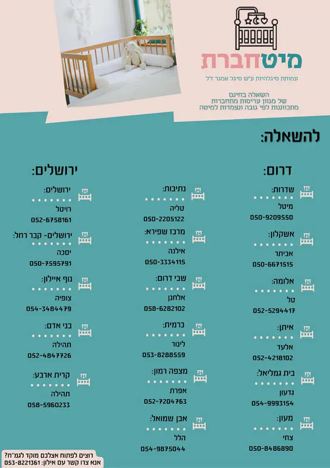 אישית ב3 הילדים הראשונים לא היתה לי מיטחברת כי המיטה שלי הספיקה גם בשבילם. רביעי עברנו דירה ולא יכולתי להצמיד את המיטה לקיר אז הייתי צריכה פתרון אחר, הורדנו למיטת מטר שלנו דופן אחת והיא הפכה למיטחברת נהדרת. (בפועל הוא המשיך לישון איתי). מיטות מטר יש למסירה/יד2 בשפע.