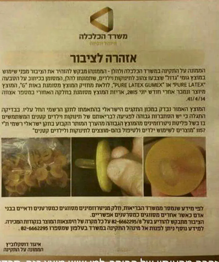 קראתי שיש בעיה עם סוג מסויים של מוצצים גדולים (כאלו של פעם..).