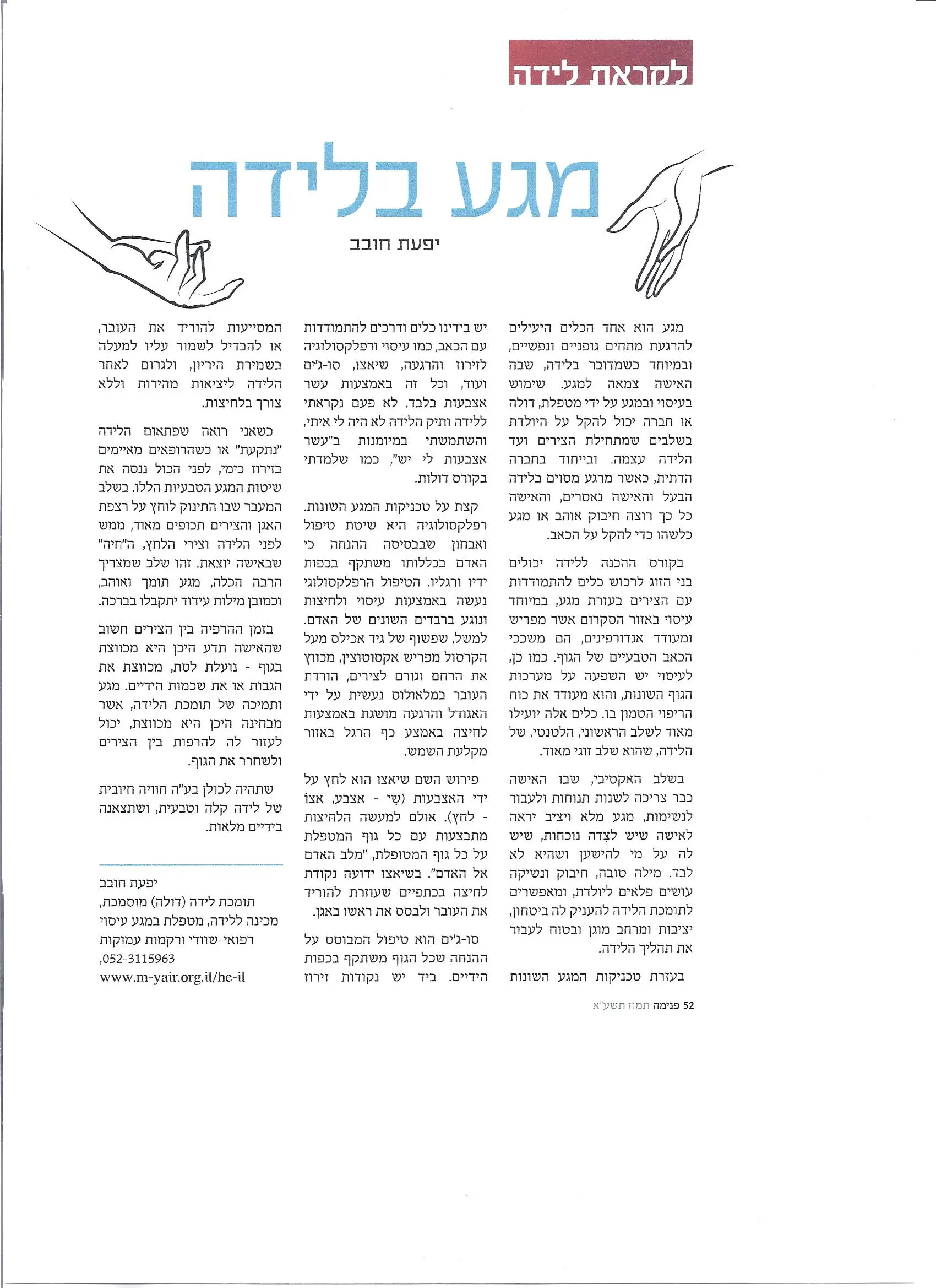 כתבה שלי על "מגע בלידה" במגזין פנימהיפעת1