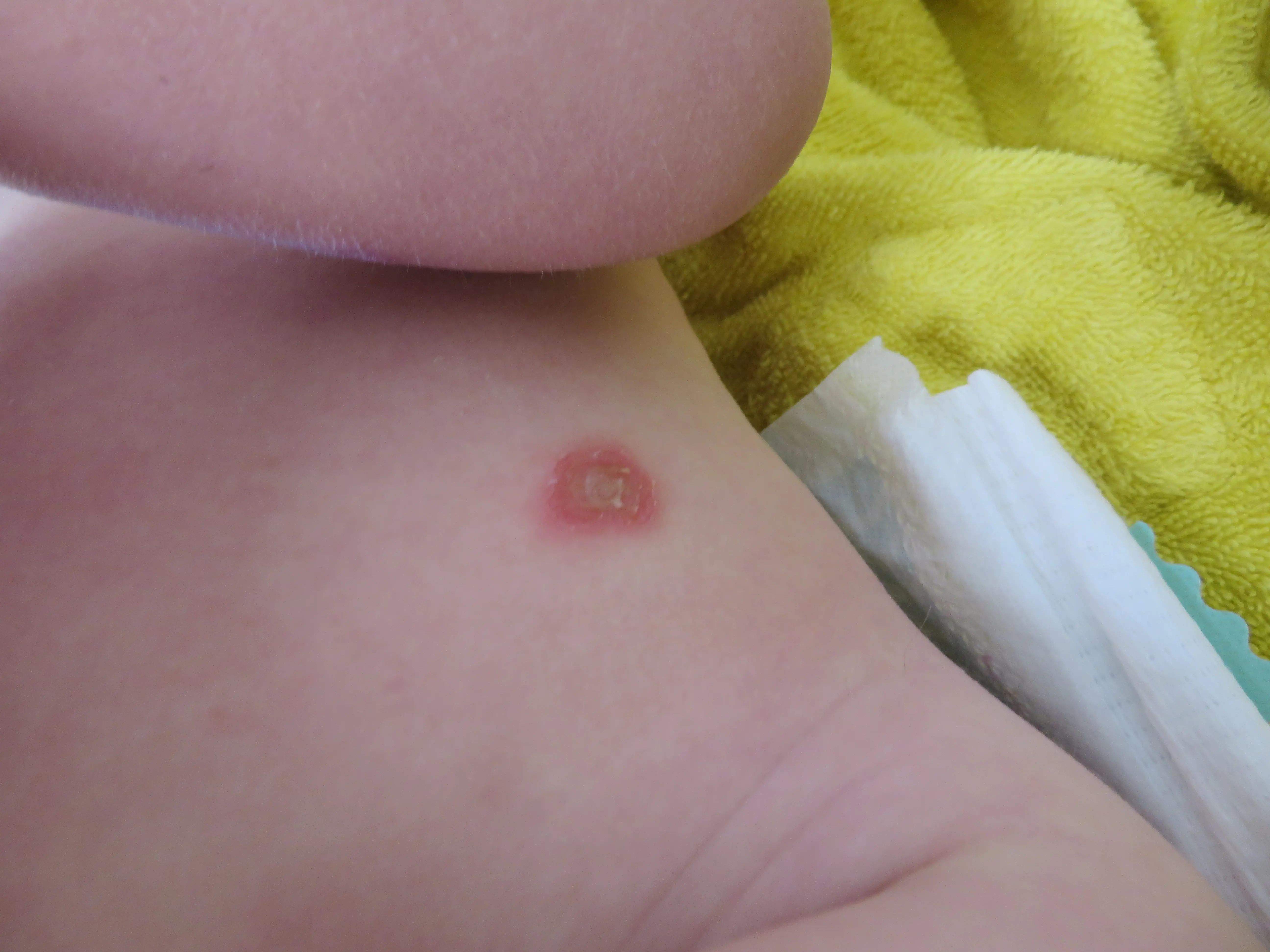 וכמובן שפה בפורום זה לא חוות דעת רפואית אבל אולי הילד גירד חזק את העקיצה וזו התוצאה.