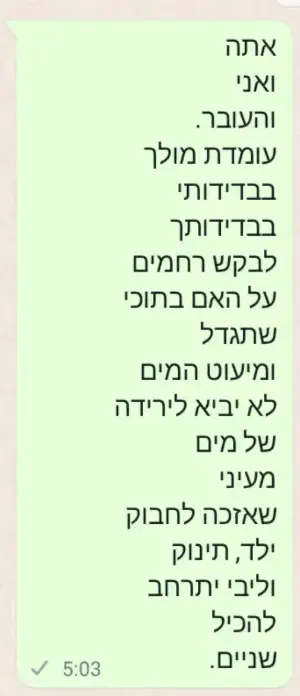 וראיתי איך זה פשוט ריסק אותי, הגעתי הביתה מותשת, ביקשתי להניק בלבד ובגלל שבאו אורחים לא קראו לי כשהתינוק היה צריך, הייתי מלאה בגודש.. אנשים באו סמוך לשבת ולא הספקתי לשאוב וכל השבת סבלתי מכאבים.. בקיצור סיוט..