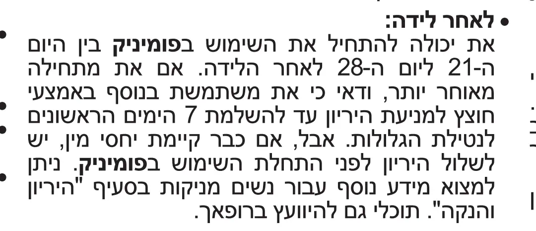 ממליצה להתייעץ דרך קו הפוריות של מכון פוע"השלומית.