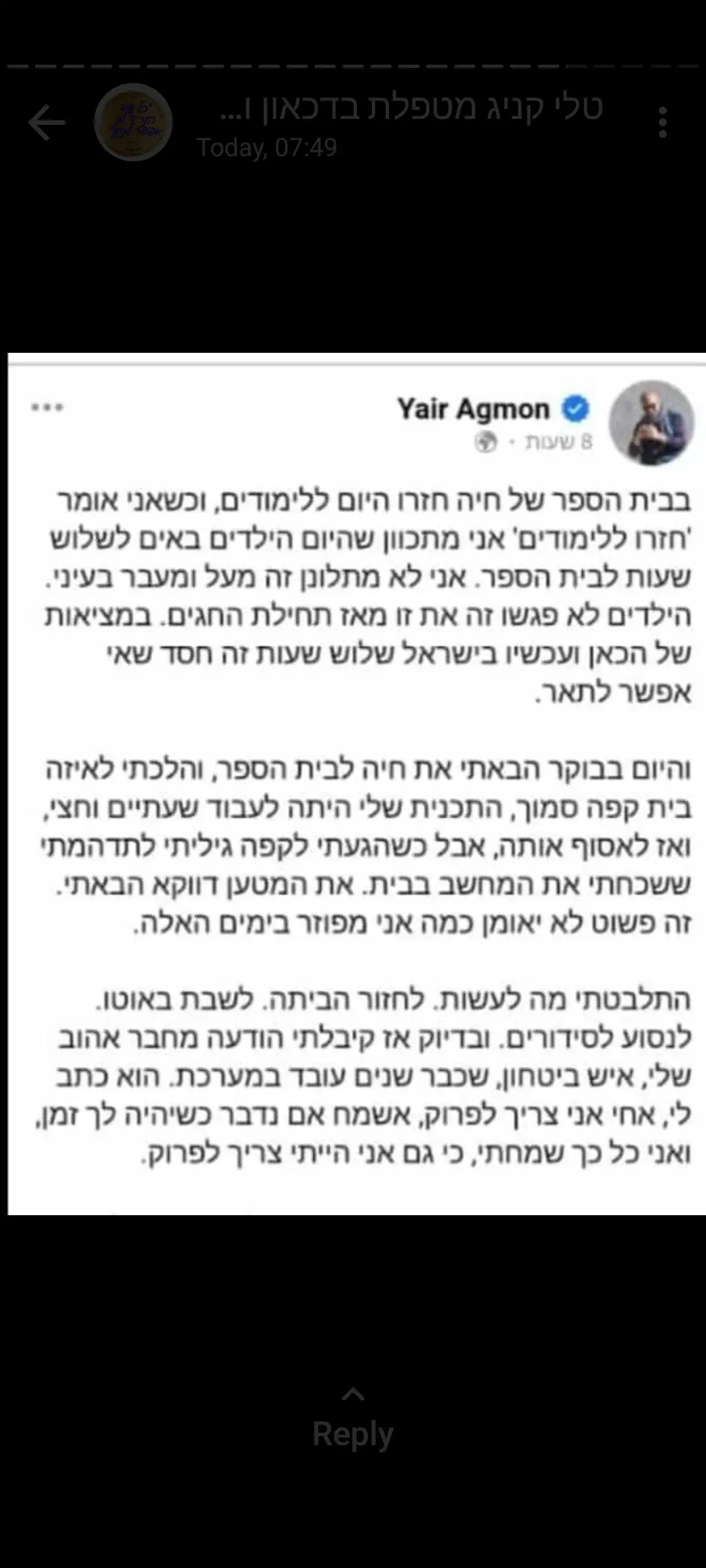 אצלינו ועד ההורים העירוני נפגש עם ראש העיר וכו', ובינתיים לא חוזרים ללמוד, עד שיטפלו בכל מה שצריך.