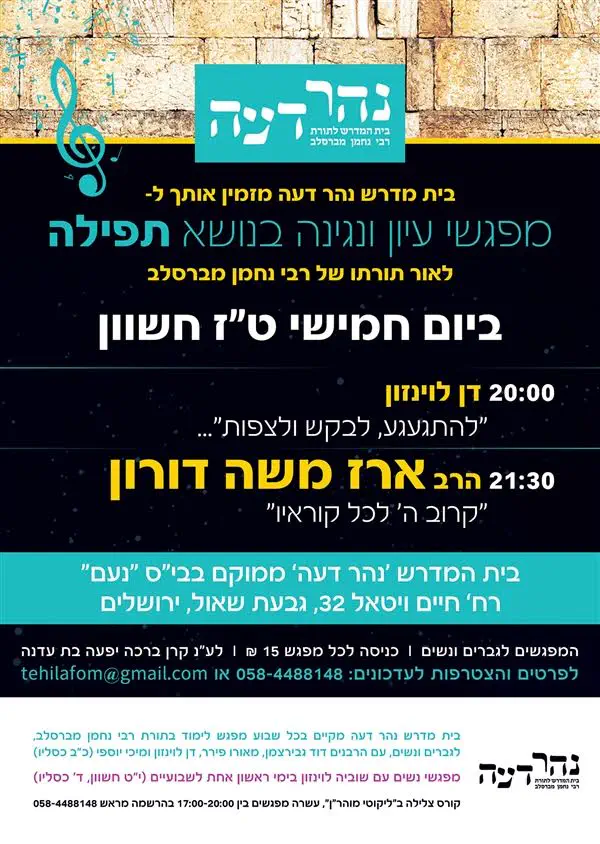 20:15 דן לוינזון "לבקש להתגעגע ולצפות" מעשה מאבידת בת מלך חלק ב'. (השיעור הראשון מצורף בהמשך)