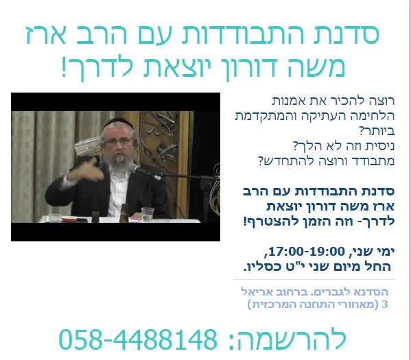 סדנת התבודדות חדשה לגברים בירושלים - הרב ארז משה דורון