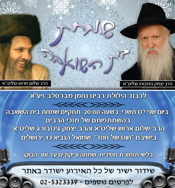 | "הנה עומד לפנינו האיש שהאיר את נשמותינו". נועם עמוס ויורם בהרי יבנאל עיר ברסלב |
