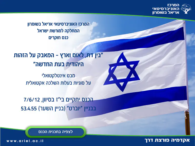 כבכל שנה, המחלקה למורשת ישראל מארגנת כנס העוסק בנושאים מגוונים הנוגעים לתחומה של המחלקה למורשת ישראל. הכנס מתייחס באספקט אקטואלי למציאות היהודית-ישראלית העכשווית, ומכאן בחירת הנושא הכנס: "בין דת, לאום וארץ – המאבק על הזהות היהודית בעת החדשה". הכנס מציג את מחקרים של המחלקה בתחום, ומייצר דיון אינטלקטואלי פורה. בין הדוברים בכנס יהיו .... הכנס יערך בתאריך יום ה', י"ז סיון – 07/06/2012, בנין יוברט (אגף השער החדש) 53.4.55 הציבור מוזמן בשמחה! |