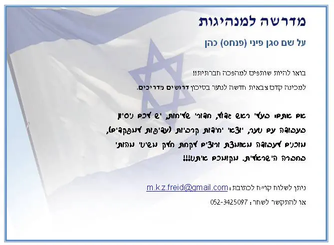 דרך אגב יום פתוח מחר לפרטים: 054-8460183