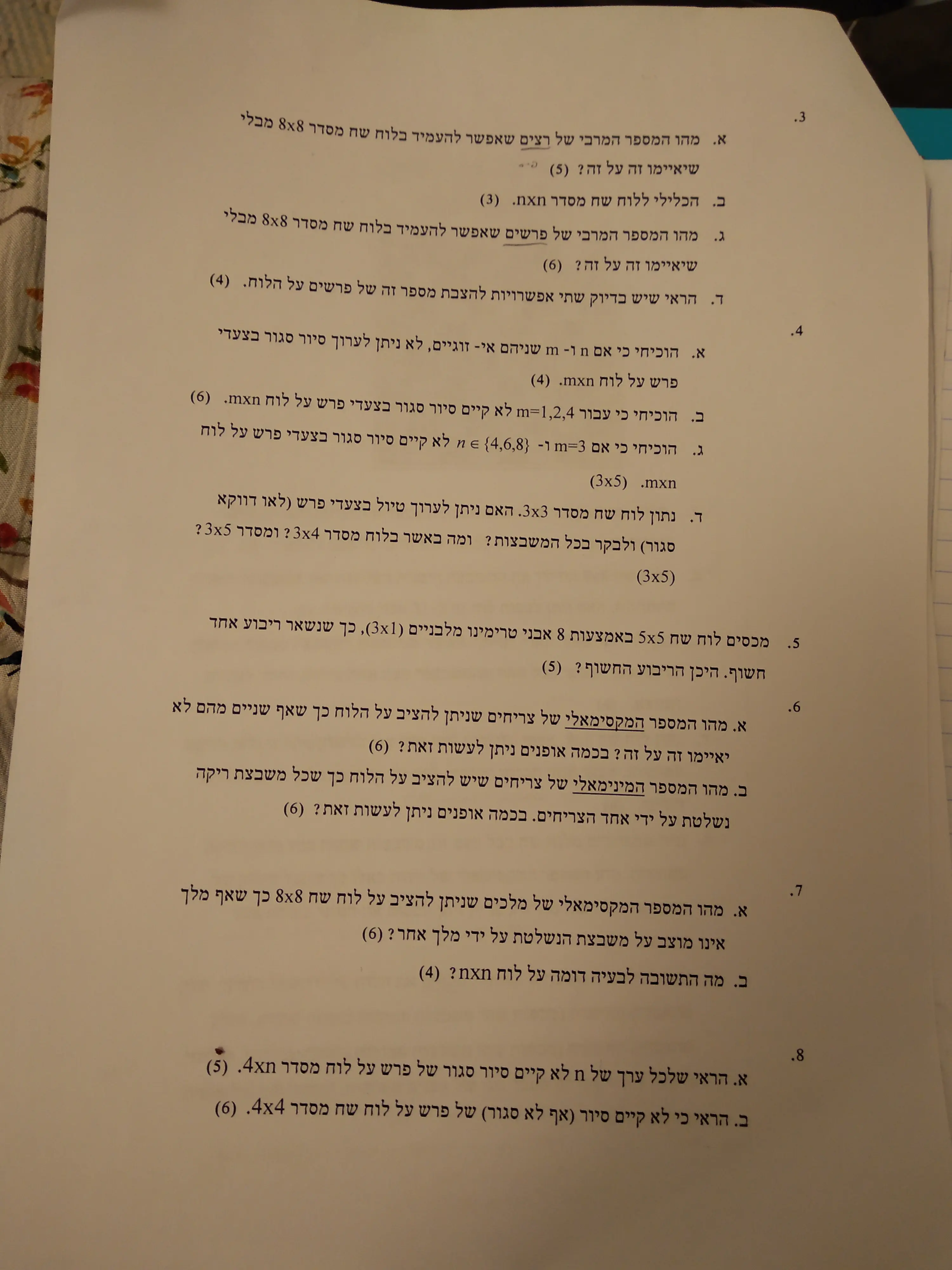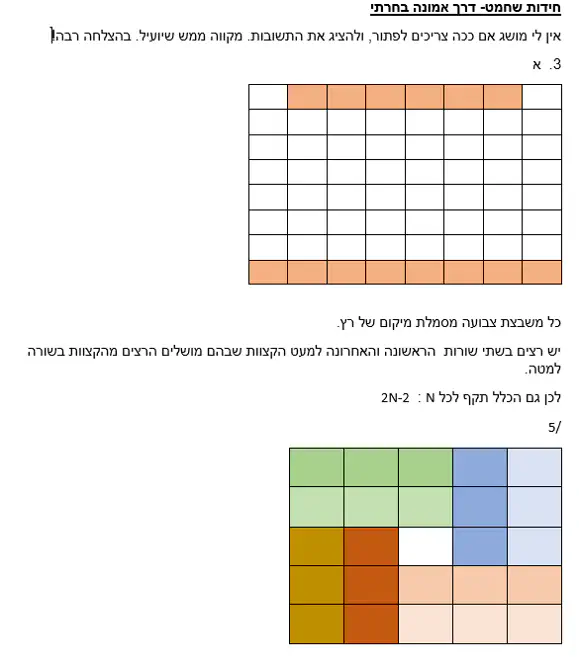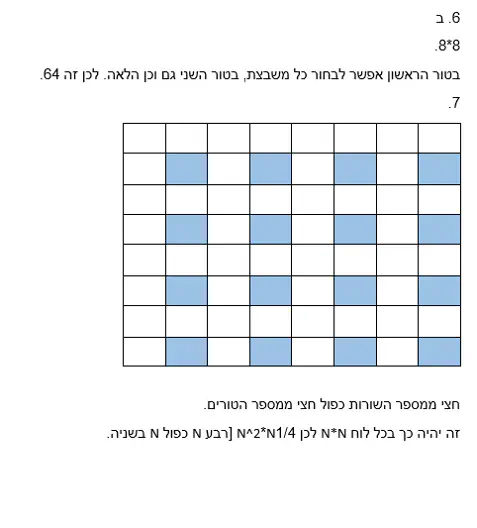 ב. הרא/י שיש בדיוק שתי אפשרויות להצבת מספר זה של פרשים על הלוח