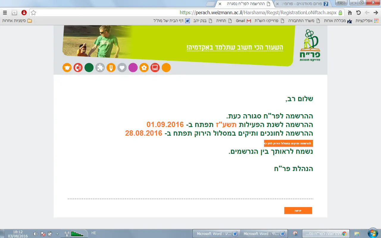 טוב, אז נשארה לי רק האופציה של פר"ח גם כן. לפחות שאותה לא אחמיץ, ב1.9 על השעון אני עם האתר שלהם פתוח כדי להירשם