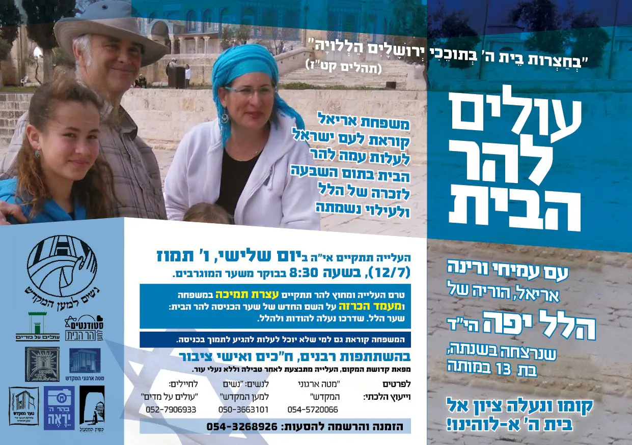 השבת (פרשת מסעי) ב' באב לפרטים והרשמה: