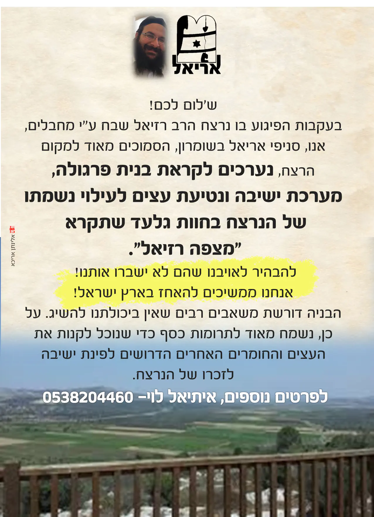 בצפייה לבניין אריאל....