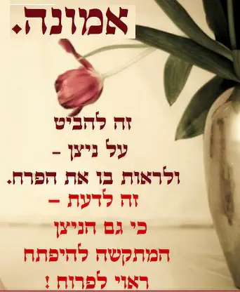 שנזכה להעריך את מה שה' נתן לנו, להתעלות ולהעלות אחרים, מתוך אהבה ואמונה מלאה בה' וביטחון שמה שה' נתן לנו הוא בדיוק מה שאנו צריכים. כדי להתקדם.