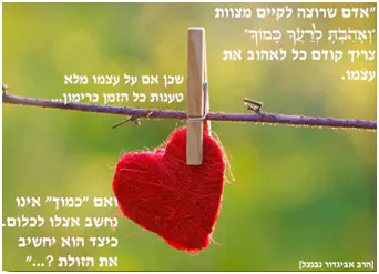 כמו שהבאנו בצד מהרב נבנצאל, היסוד של קיום ואהבת לרעך כמוך, שהוא כלל גדול בכל המצוות של בין אדם לחברו הוא להעריך את עצמך.
