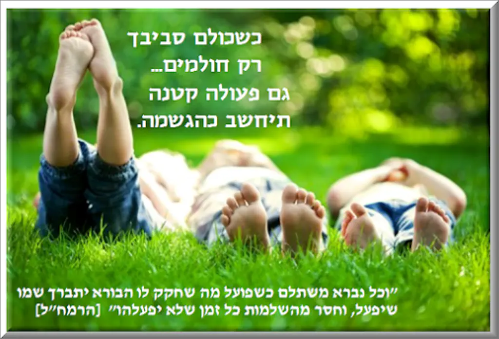הרי שלא במקרה הבורא ברא כל יצור בצורה שונה, רק זה שפועל עם החומרים שיש לו, והכישורים שניתנו לו - יגיע לשלמות .