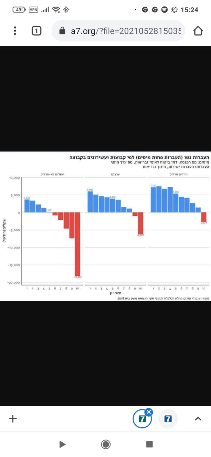 כיוון שמי שבעשירונים הנמוכים כלל לא משלם מס הכנסה, ובנוסף לכך בהרבה מקרים הוא יקבל תמיכות שונות ומשונות (מס הכנסה שלילי, הנחה בתמת, עליית הנוער ועוד ועוד) בסופו של יום הנטל על העשירונים הגבוהים. אגב, שלא תחשבו מי שנמצא בעשירון השמיני והתשיעי הוא וורן באפט או ביל גייטס, מדובר על אנשים שעמלים קשה לפרנסת יומם, ואין הצדקה מוסרית שהם ישלמו עבור מי שבחר לחיות באורח חיים של הסתפקות במועט.