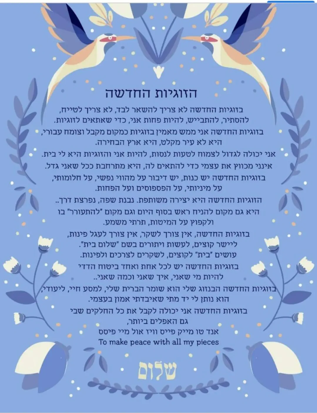 מקווה למבודדות - הודעה שקיבלתירקלתשוהנ