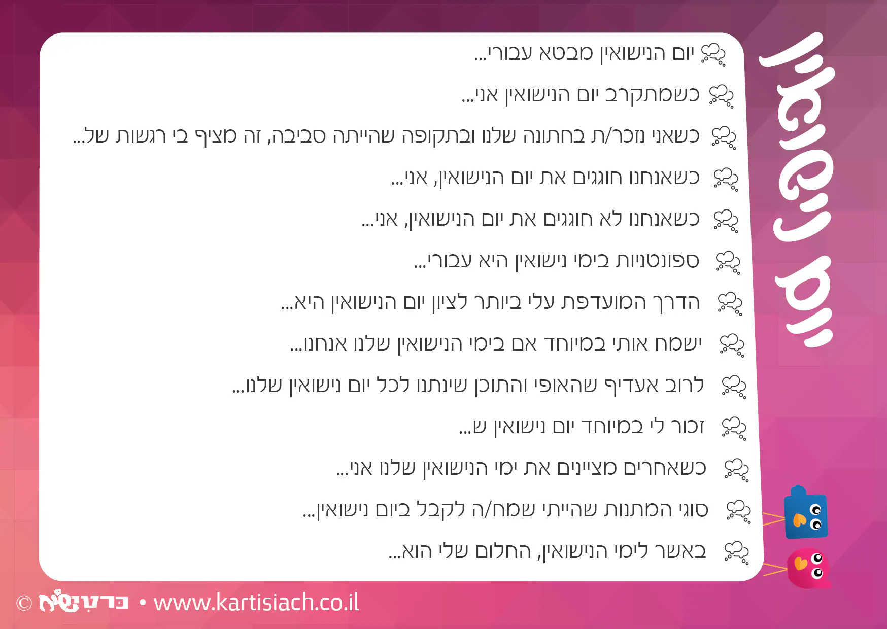 אם תרצה עוד הרחבה בשמחה, ואתה יכול גם לשלוח לי את המייל שלך בפרטי בשמחה ואשלח לך (חינם לגמרי) ספר שכתבתי על נושא הזוגיות שמרחיב יותר גם את הנקודה הזו שהעלית וגם עוד נקודות חשובות בנישויאן).