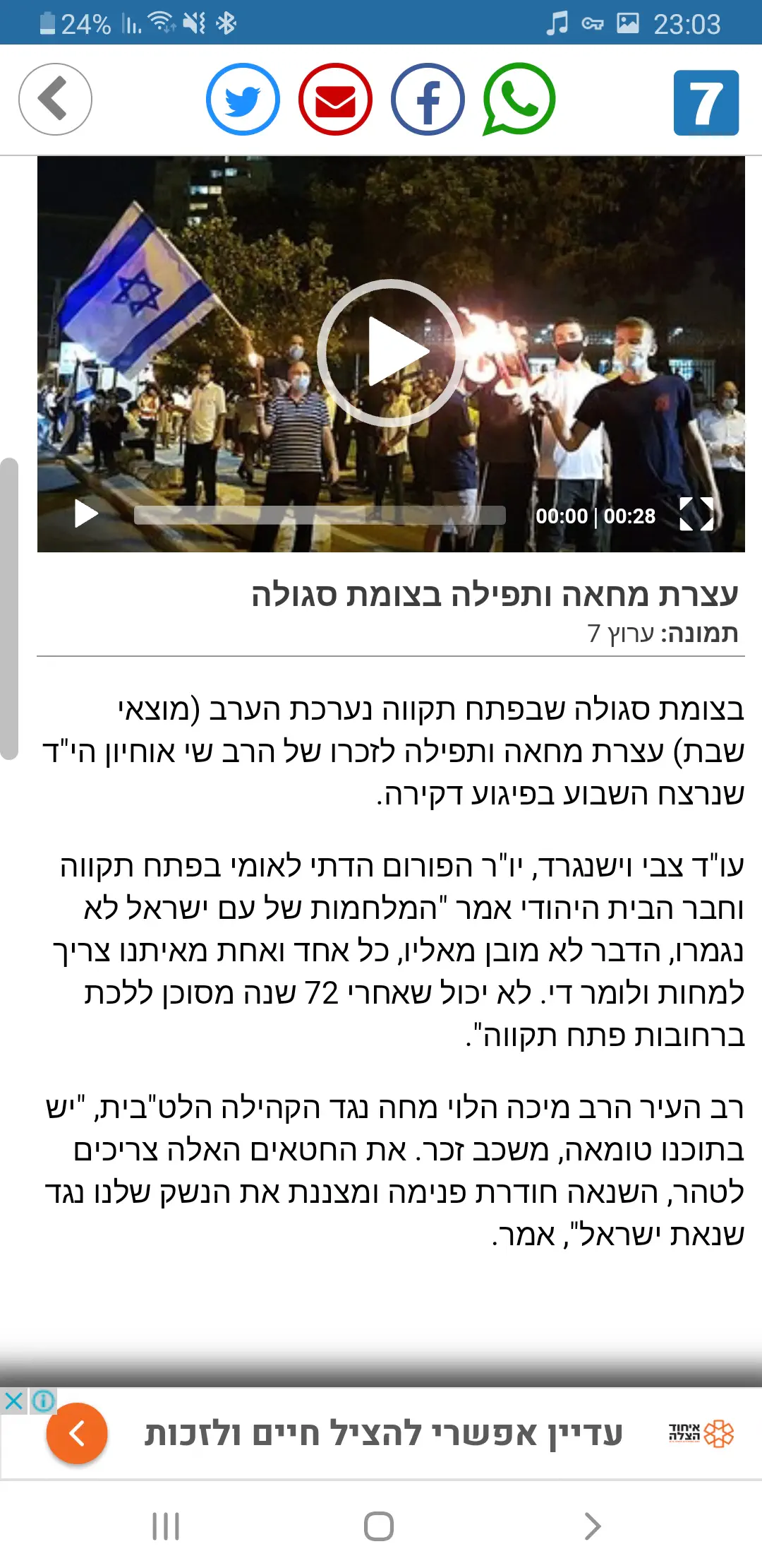 דברי הרב מיכה הלוי בהפגנהנריה -