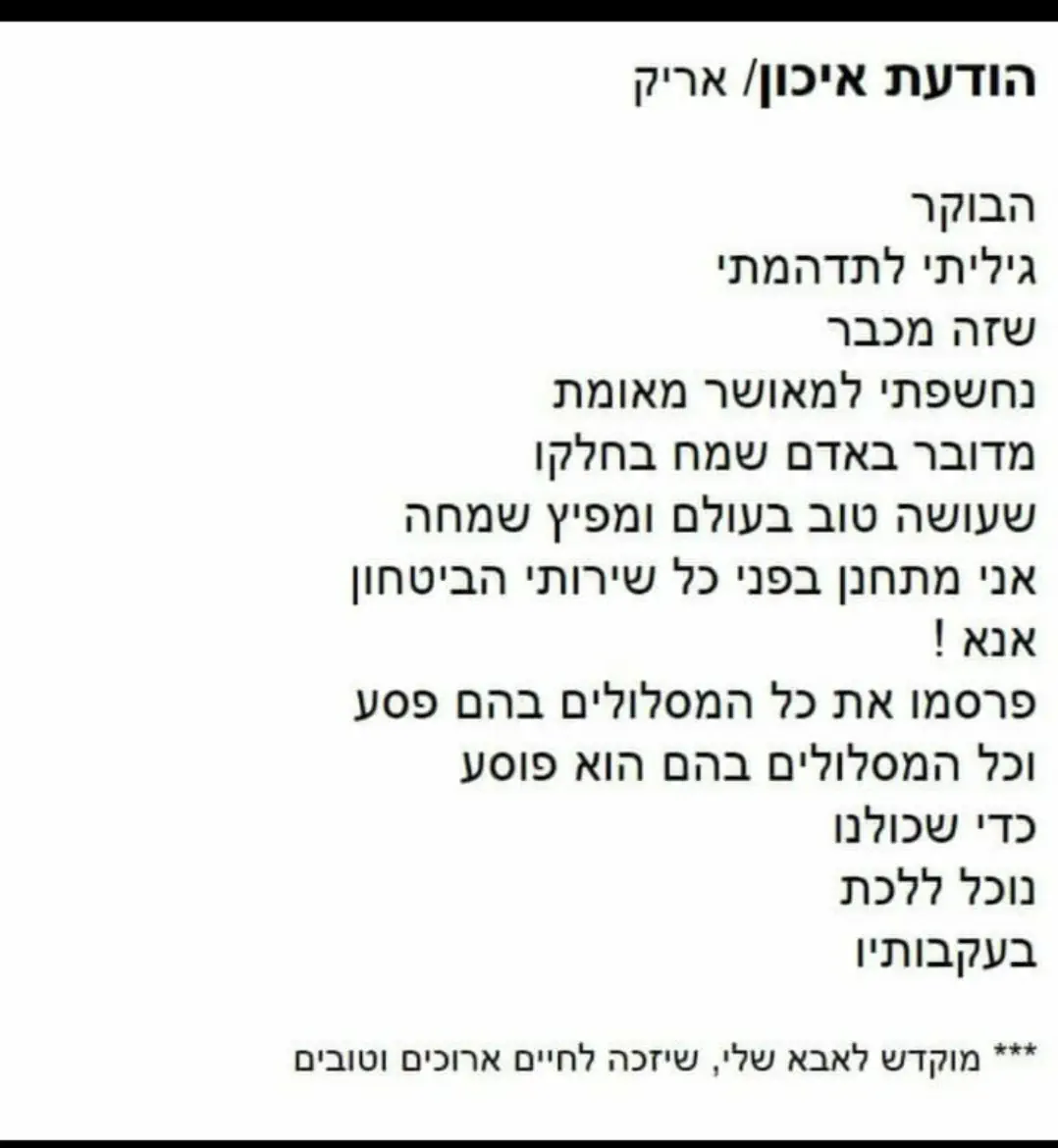 "זה באמת לא נעים" שתקתי לרגע והתחבקנו..