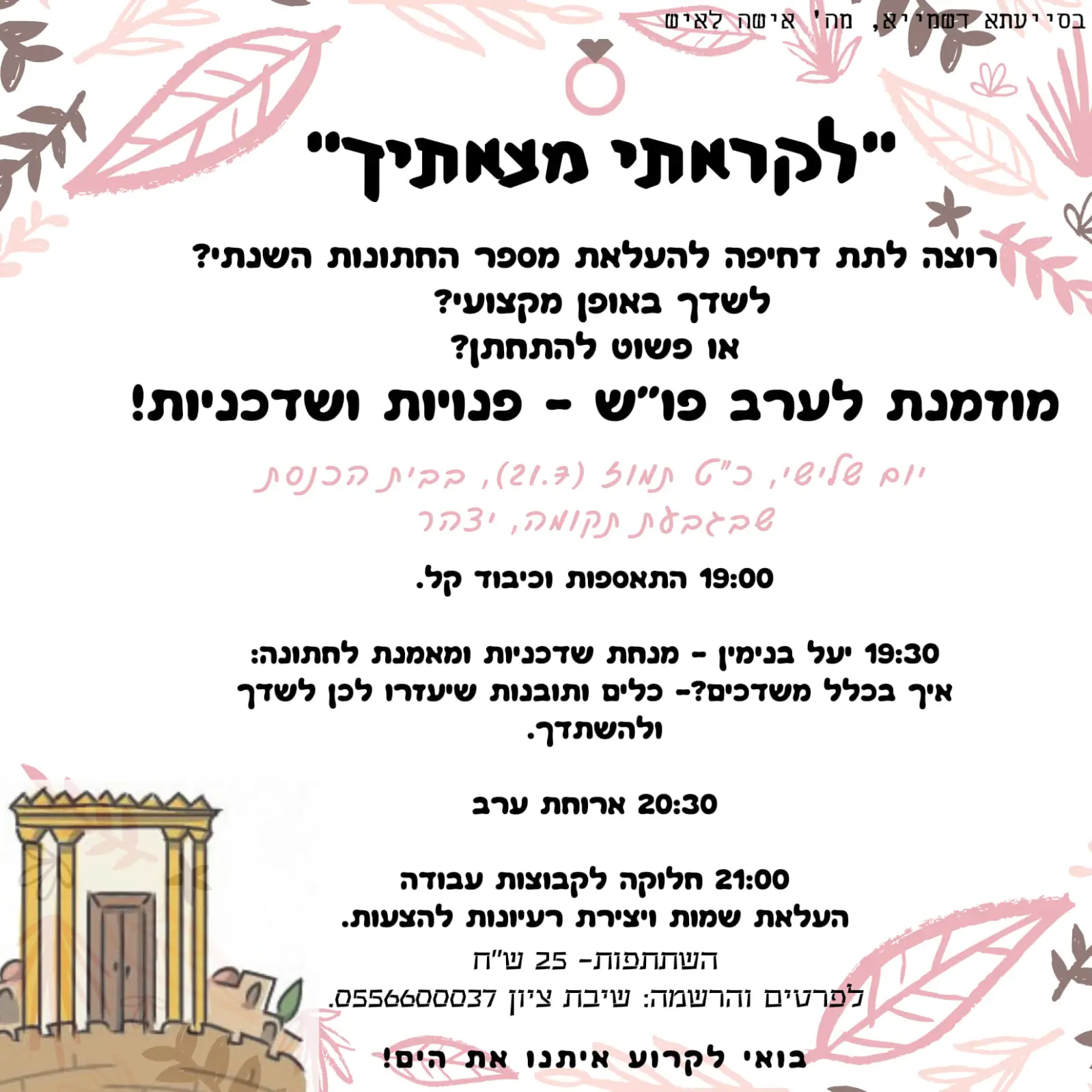 ערב פנויות ושדכניותשיבת.ציון