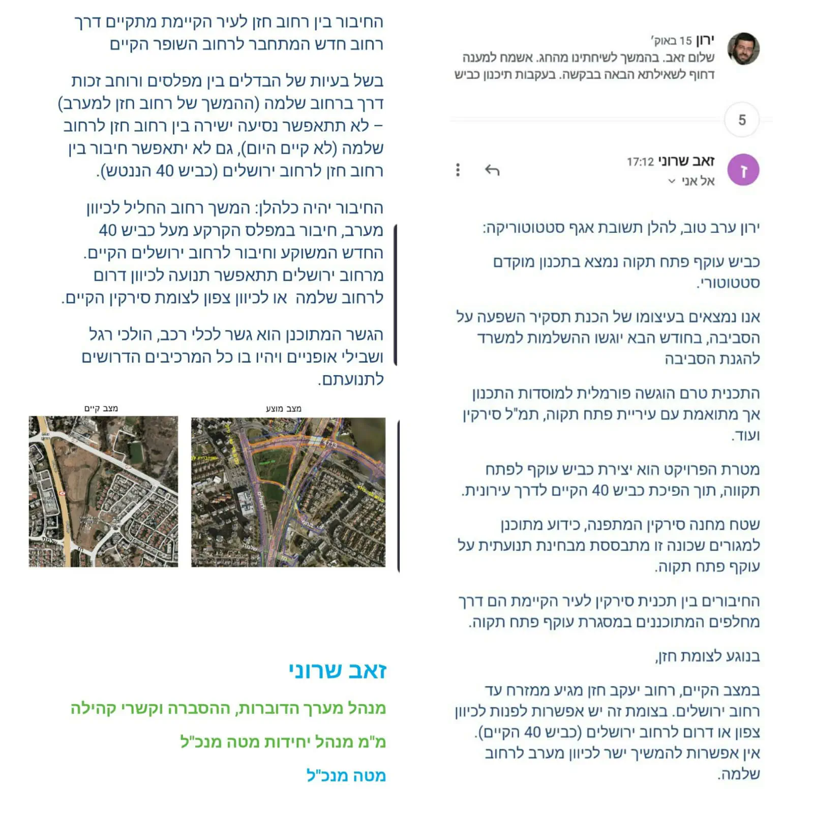 שיש שם בעיה מבחינת תחבורה ציבורית, ובשעות הבוקר יש עומס מאוד גדול ביציאה מהשכונה