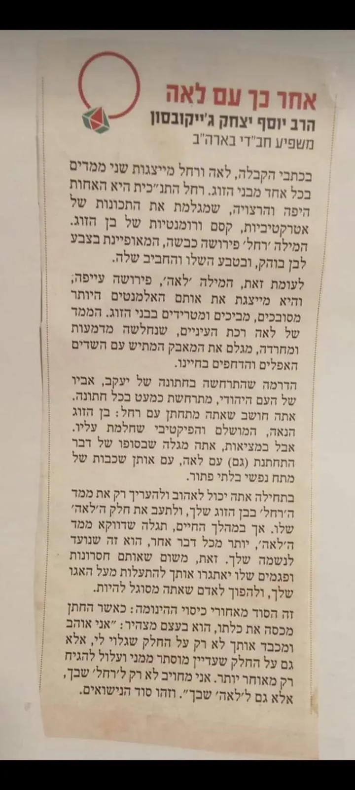 -"דאגה בלב איש - ישיחנה" - לשוחח עם בן/בת הזוג / עם חבר טוב וכן הלאה.