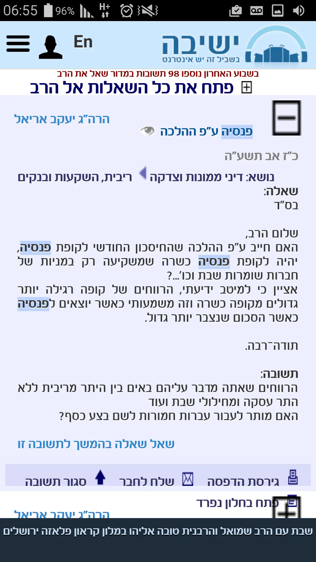 לגבי הבעייתיות ההלכתית, אז זה נושא מעניין שכדאי ללמוד אותו ובמרכזו איסורי ריבית. יש דעות השוללות לחלוטין מקצה אחד, אך מקצה שני יש שסוברים שכל איסור ריבית לא נוגע בשום צורה שהיא במקרה של חברה בע"מ (וכל קרנות הפנסיה למינהן הן מסוג זה). מומלץ במקרה זה להתייעץ עם מורה הוראה מוסמך בענייני ריבית המבין בתחומי כלכלה בת ימנו (הכרחי).