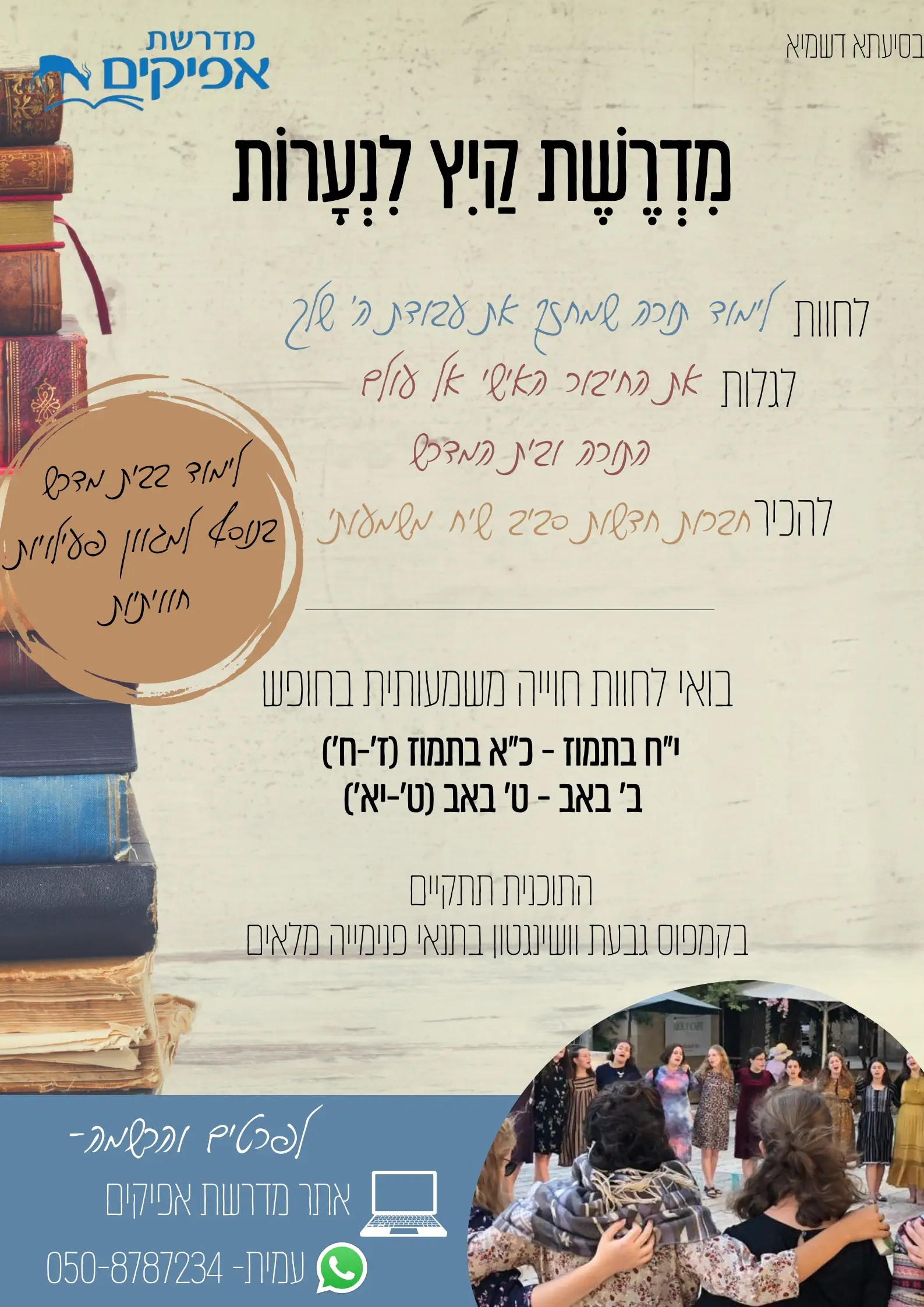 וגם בנות בעצמם צמאות לשמוע אז זה יוצר אוירה של הקשבה, התעניינות, רצון לקבל ולהתקדם