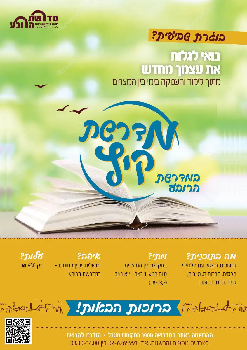 יודעת מה התאריכים השנה של התוכנית בתשעת הימים של מדרשת הרובע?