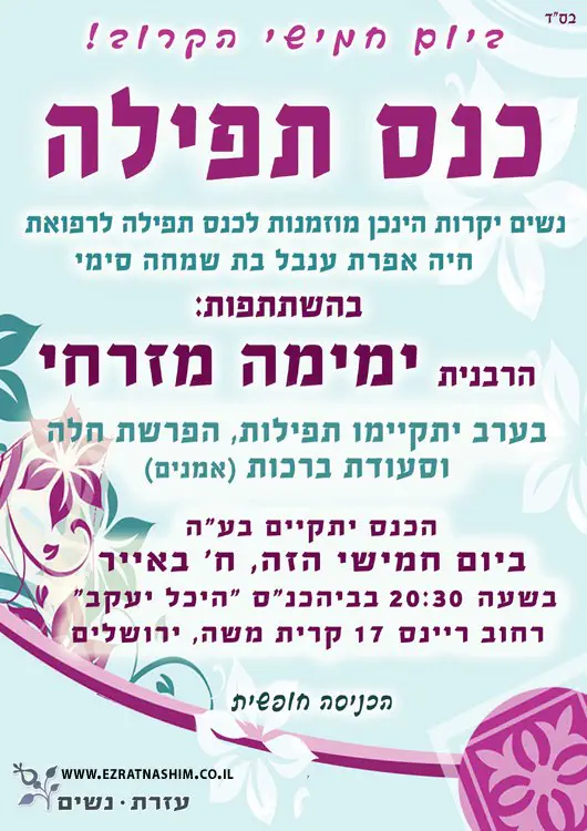 יתקיים כנס תפילה לרפואת