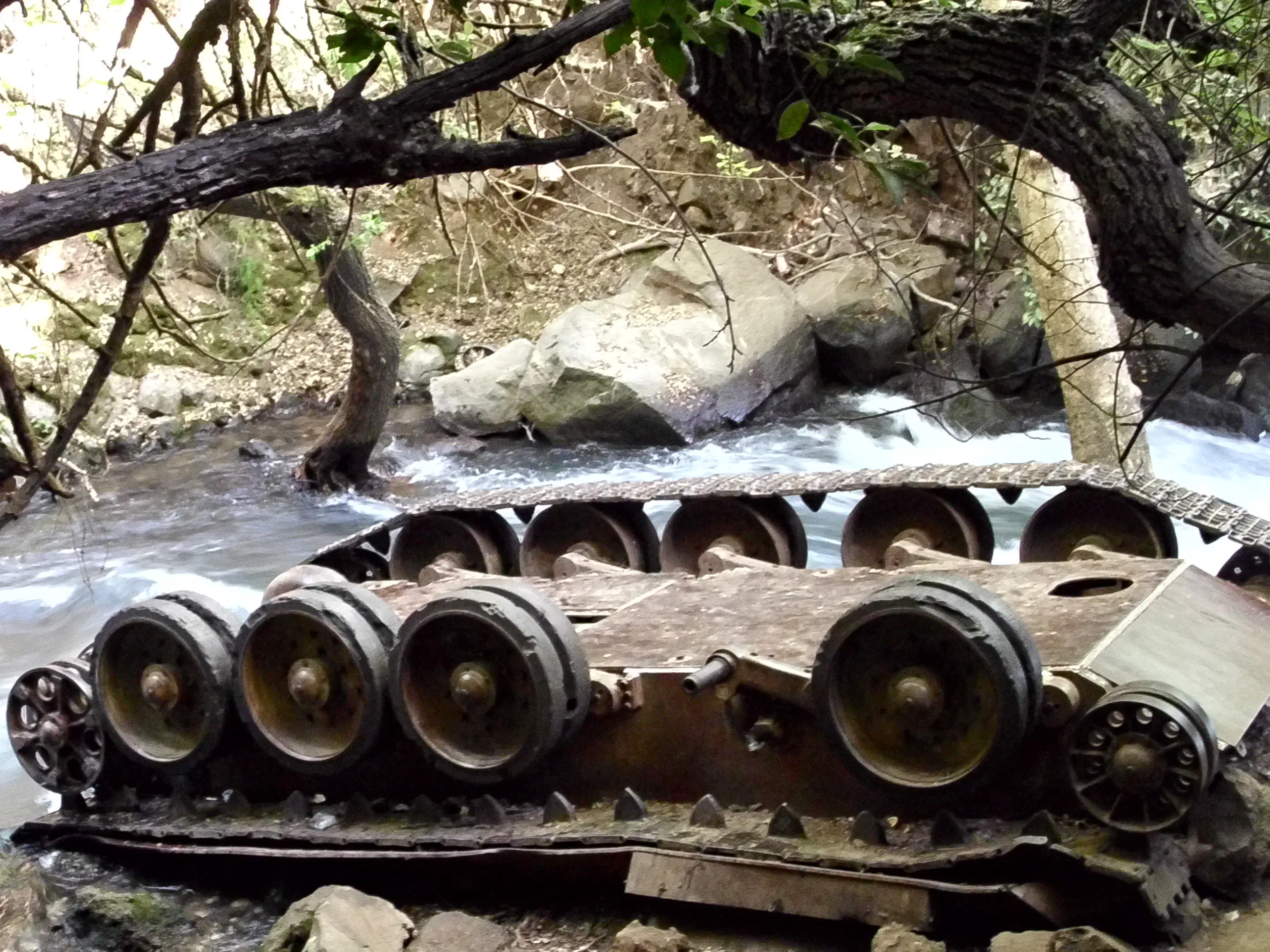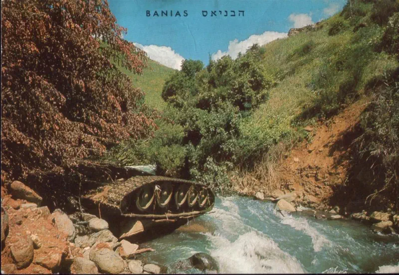 הטנק ההפוך בבניאס קצת אחרי המפל ליד קיבוץ שניר