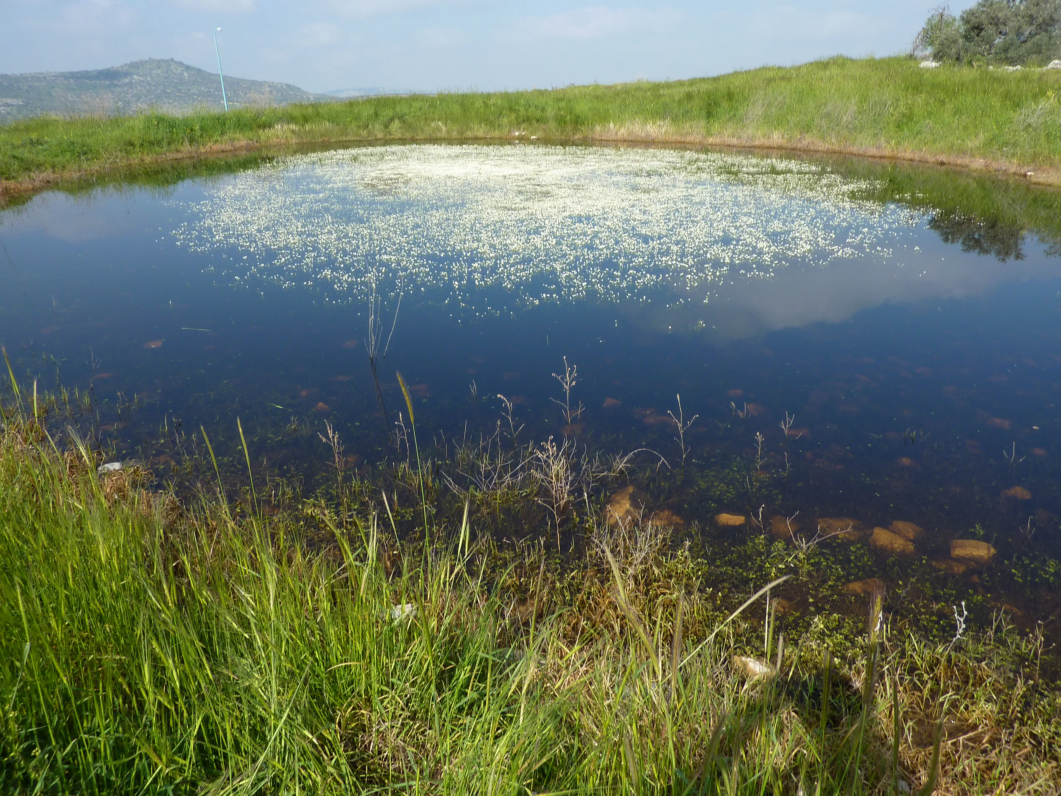 ירדנו אל הואדי וחצינו את נחל שכם שמזרים את הביוב של העיר אל נחל אלכסנדר. יאיר הסביר שבואדי מתבצעות עבודות להנחת קו ביוב שיוביל את השפכים אל בריכות חמצון גדולות וכך יציל את נחל אלכסנדר. כל זאת במימון גרמני. טיפסנו אל איזור התעשיה בראון שבו שוכנים כיום משרדי המועצה האיזורית קדומים, חצינו את איזור התעשיה והגענו לקבר שייח' עלי ואחריו לבריכה עונתית עגולה ויפה, מלאה בנוריות המים.