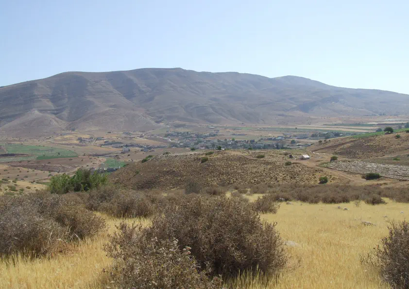 הרחק ברקע הר ארדון ובבקעה במרכז הר חרוט (בשחור)