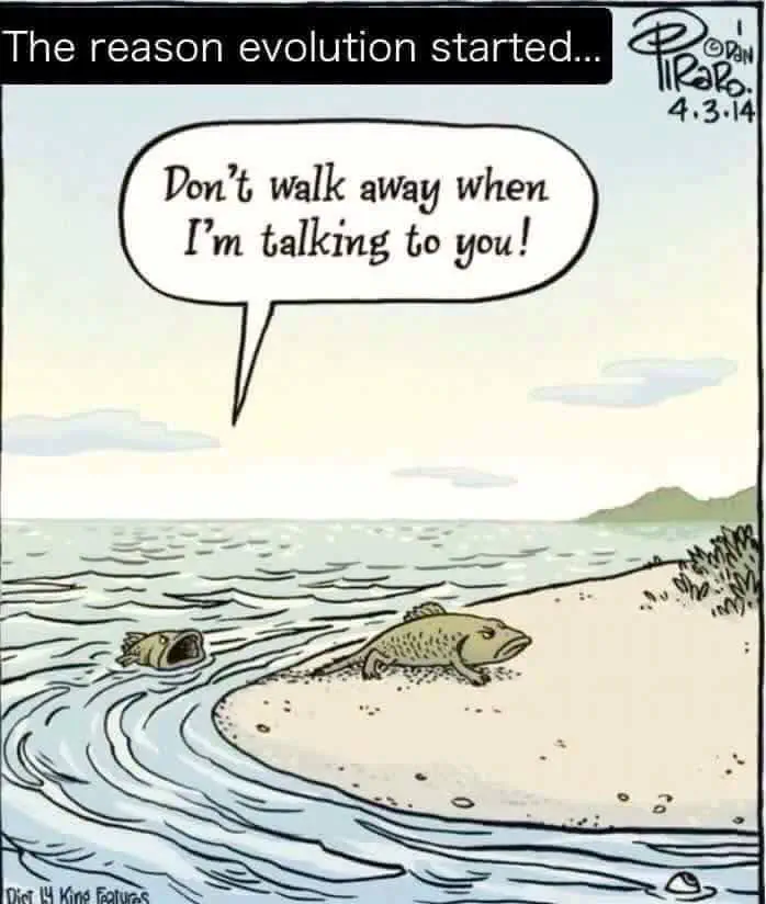 אלא מה תאמר, שהוא ניסה לדבר כשהוא הרים רגע את הראש מעל המים? אבל מתי הוא הספיק לפתח את הכושר דיבור, אם הוא כל הזמן היה במים? הרי עצם הטענה של האבולוציה זה שלוקח הרבה זמן לפתח כשרים כאלה...