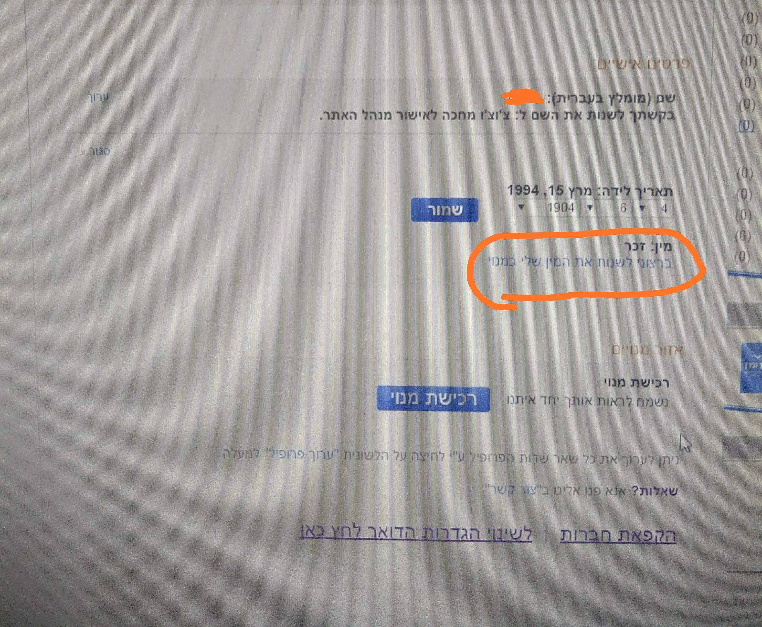 ככה ידעו שאין מה לנסות בזבל הזה. עכשיו שאני חושב על זה מזל שהשינוי לא אושר. אם הבנות היו רואות שם מוזר זה היה נראה כמו פרופיל של מישהו שפתח אותו מלכתחילה כי הוא היה משועמם. ואם הייתי מעלה את הגיל שלי למאה אף אחת אפילו לא הייתה רואה אותי.