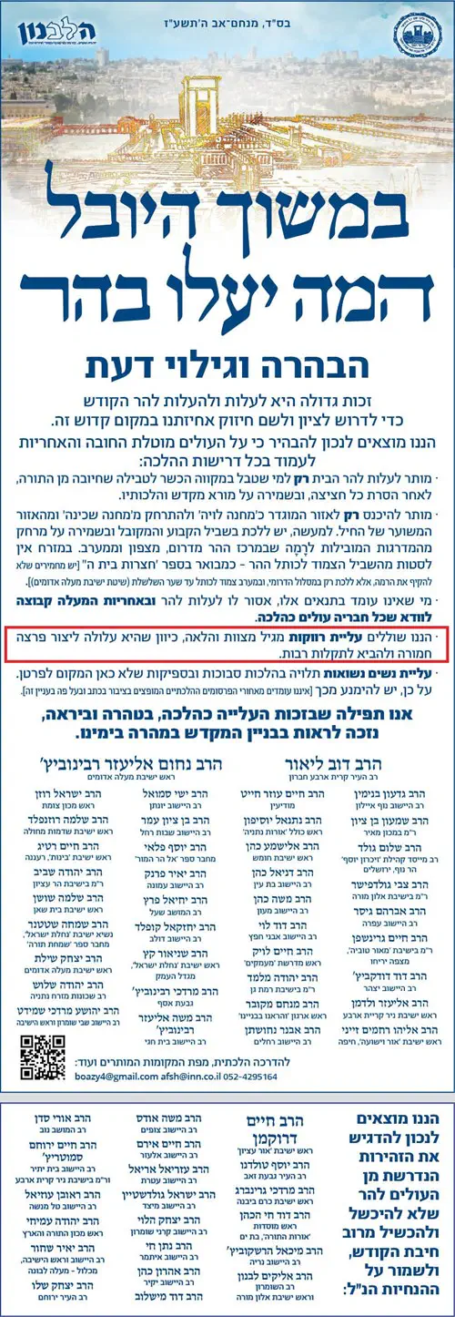 וזאת מלבד האיסור הנפרץ והנורא של עלית יהודים באיסור גמור להר הבית.