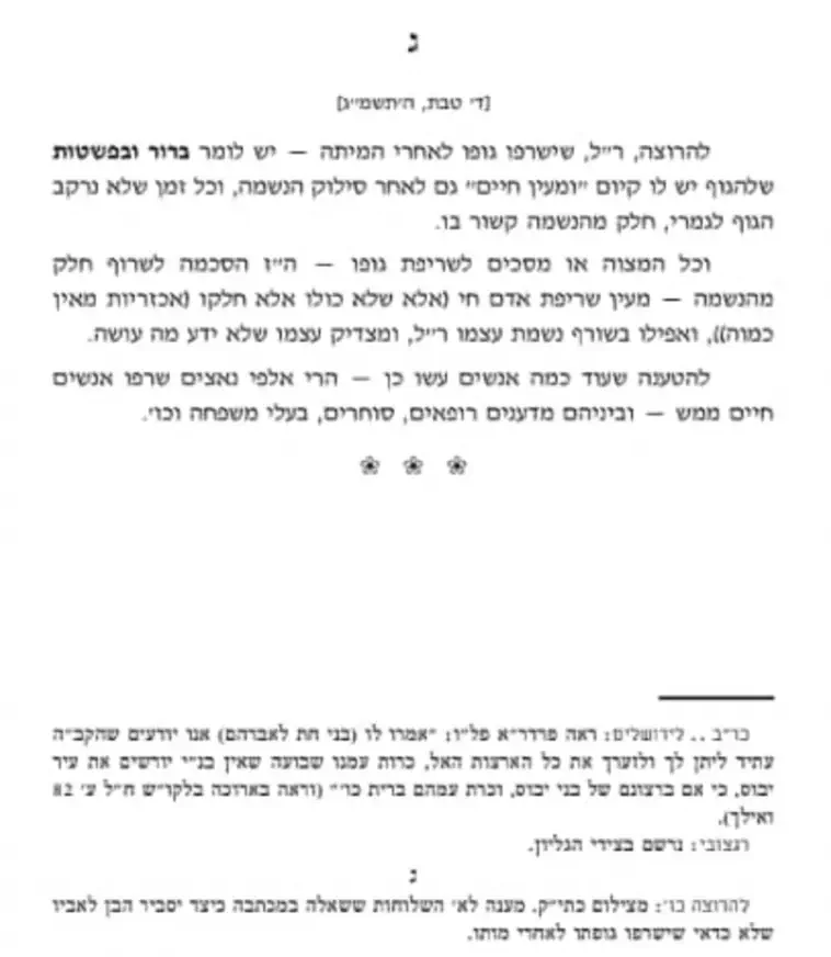 בין כך ובין כך, לא עליה אנחנו מדברים כלל ועיקר, כי מי מאיתנו יכול בכלל לעמוד במחיצתה. אבל אנחנו מדברים אל שלומי אמוני ישראל הללו שנוהגים לפי ההלכה ואשר מעריצים אותה ובצדק, שהם שואלים מה עמדת ההלכה ביחס לעניין הזה של שריפת גופה.