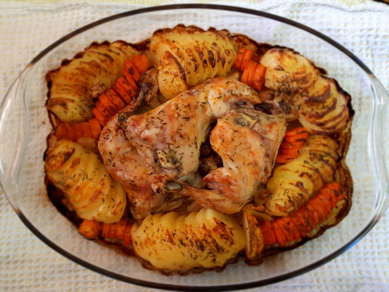 בוקר עוף ותפוחי אדמה ברוטב תפוזים בתנור, אנטיפסטי