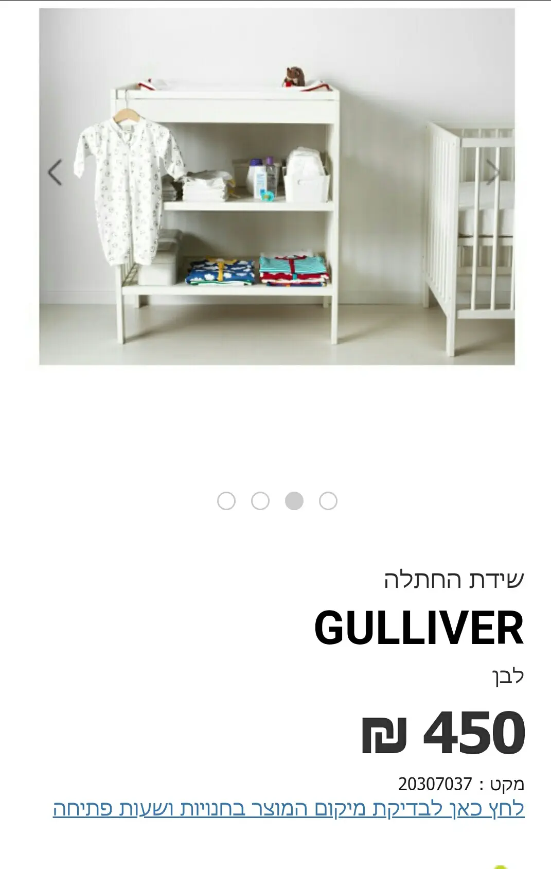 אידיאלית הייתי רוצה עוד שידונת צרה יחסית וגבוהה שתהיה בחדר שלנו, עם מגירות לבגדים של התינוק, שמצד אחד תהיה עם חלק עליון מספיק רחב כדי לחתל עליה בבטחה בחודשים הראשונים, אבל שלא תתפוס את כל החדר (כבר יש ארון ושידה שלנו+מיטה זוגית+העריסה.. די צפוף כך שעוד שידת החתלה לא באה בחשבון).