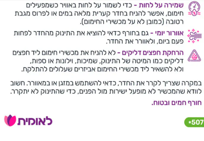בדיוק שלחו לנו מלאומית הנחייות לחימום חדרי תינוקותאמהלהאחרונה