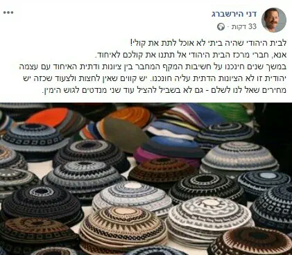 כמובן שזה בסדר שיהיו חילוקי דעות, זה בסדר שהאחד ירצה להיות תורני יותר או תורני פחות. שהאחד ירצה להניף את הדגל החשוב של ארץ ישראל והשני את הדגל החברתי שלא פחות חשוב ממנו. האחד יגור בלב השומרון ושני בליבה של פתח תקווה. הכל בסדר. אף אחד לא רוצה שנהיה דעה אחת והשקפה אחת. אבל האם כל זה צריך להפריע לנו לחיות בשלום אחד עם השני ולקבל אותו?