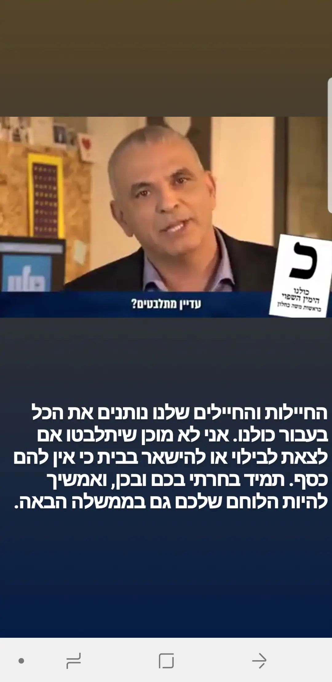 ), ימין אמיתי, ערכי ואידאולוגי אבל כל מפלגה שמשרתת את האינטרס של המחנה הלאומי היא אחלה לגמרי