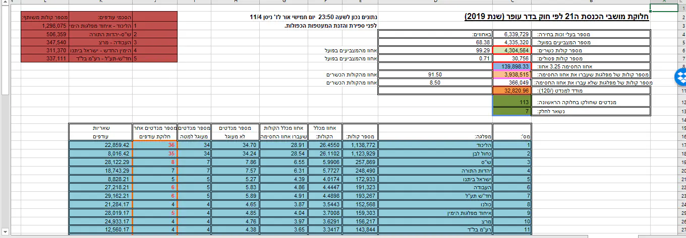 ואגב, ארבעה מנדטים, אבדו בין הקדנציה הראשונה של בנט לשניה, בזה שהוא הסכים למשמעת קואליציונית על העלאת אחוז החסימה. ובגללו יחד לא עברו בקדנציה הקודמת!